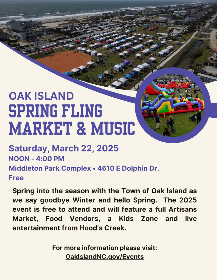 Kick off the Spring season with the Oak Island “Spring Fling Market & Music” at Middleton Park! See local Brunswick County craft and food vendors and find unique beach-crafts for the home or for vacation souvenirs.